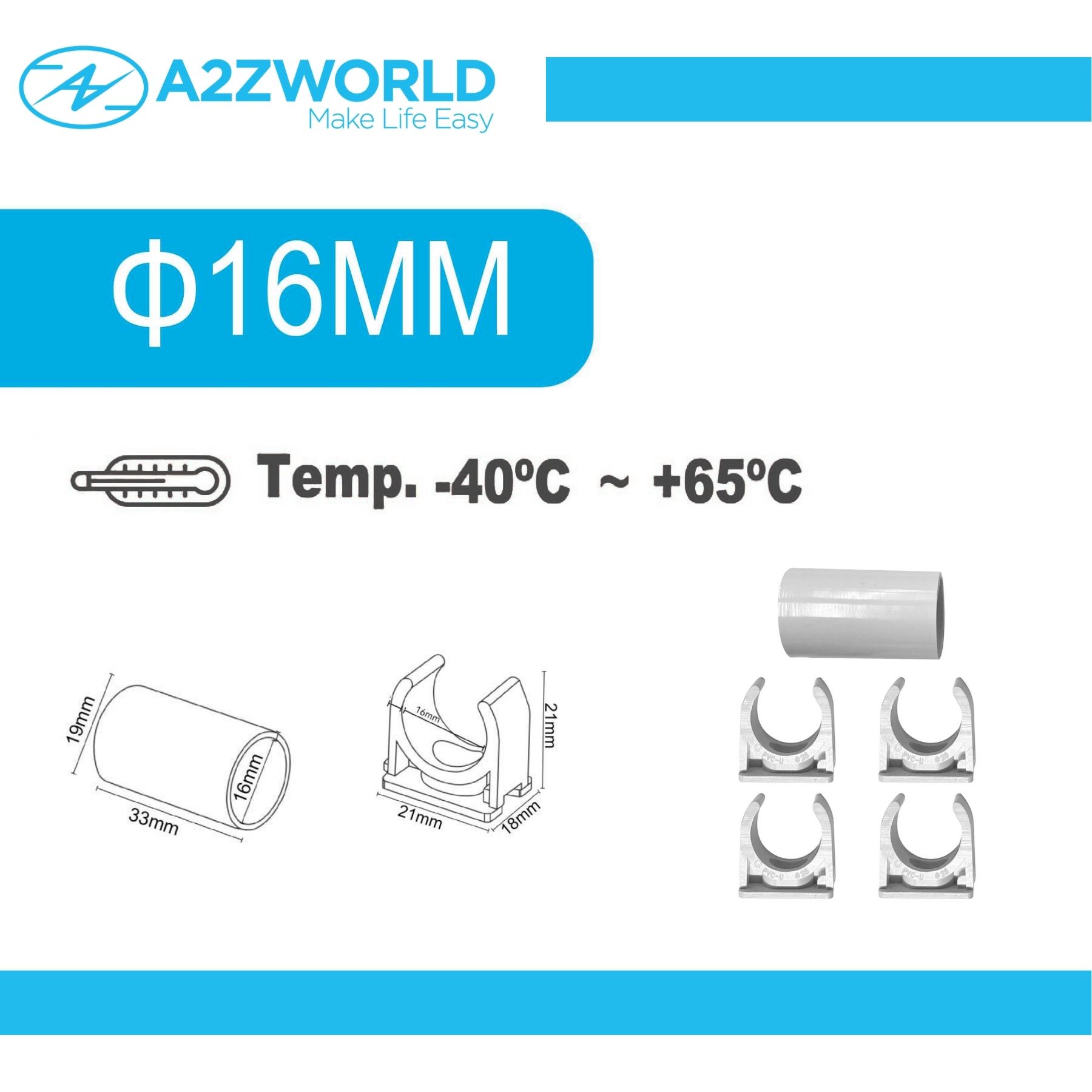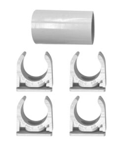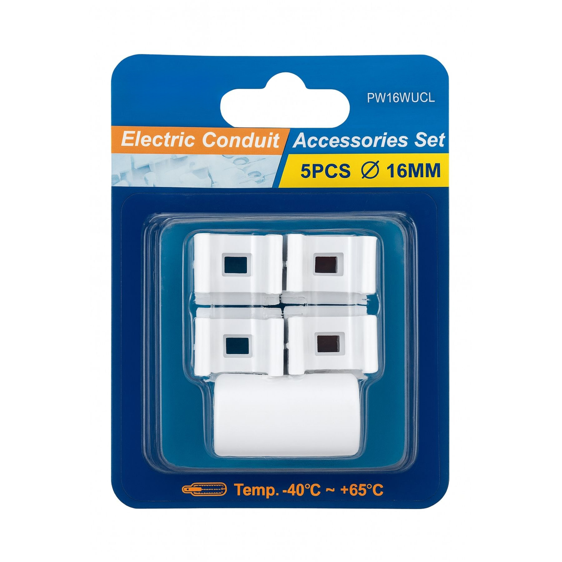 Kit 5 Accessori Per Tubo Rigido e Flessibile Da 16mm, 4 Clip Fissatubo A Scatto + 1 Giunto Raccordo Lineare, Colore Bianco IP40