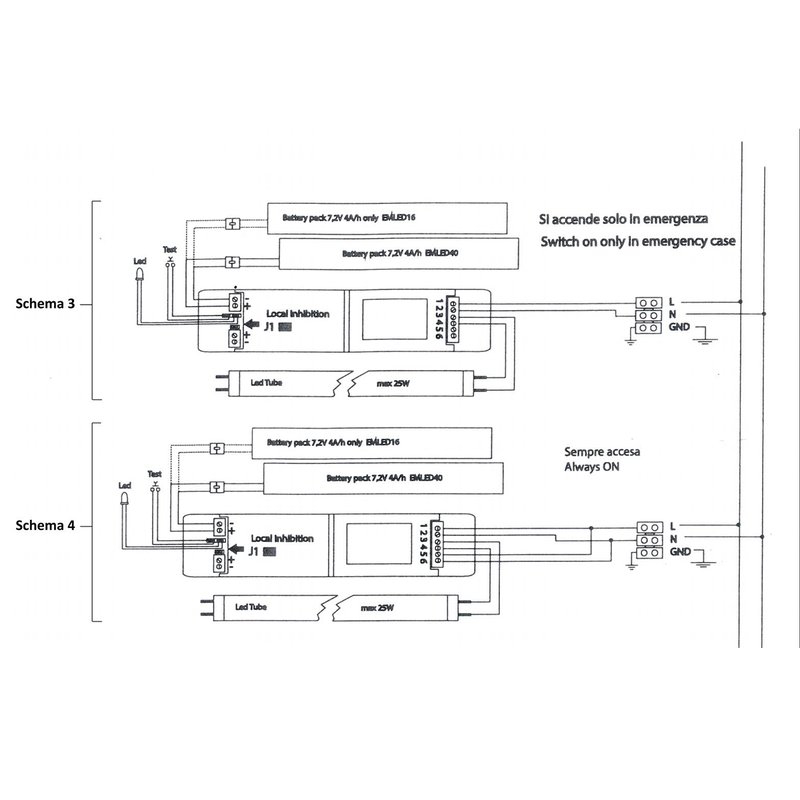 Kit Sistema Di Emergenza A Led 25W 220V 3 Ore