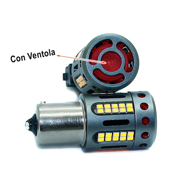 Lampada Led 1156 BA15S P21W 100% Canbus 12V 21W Effettiva Bianco 6000K Piedi Dritti Con Ventola In Testa