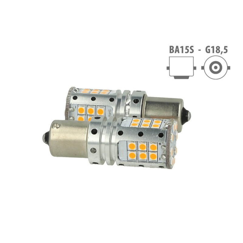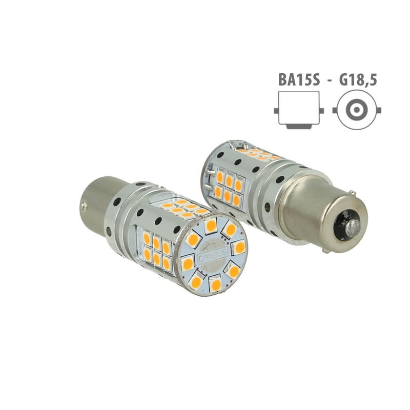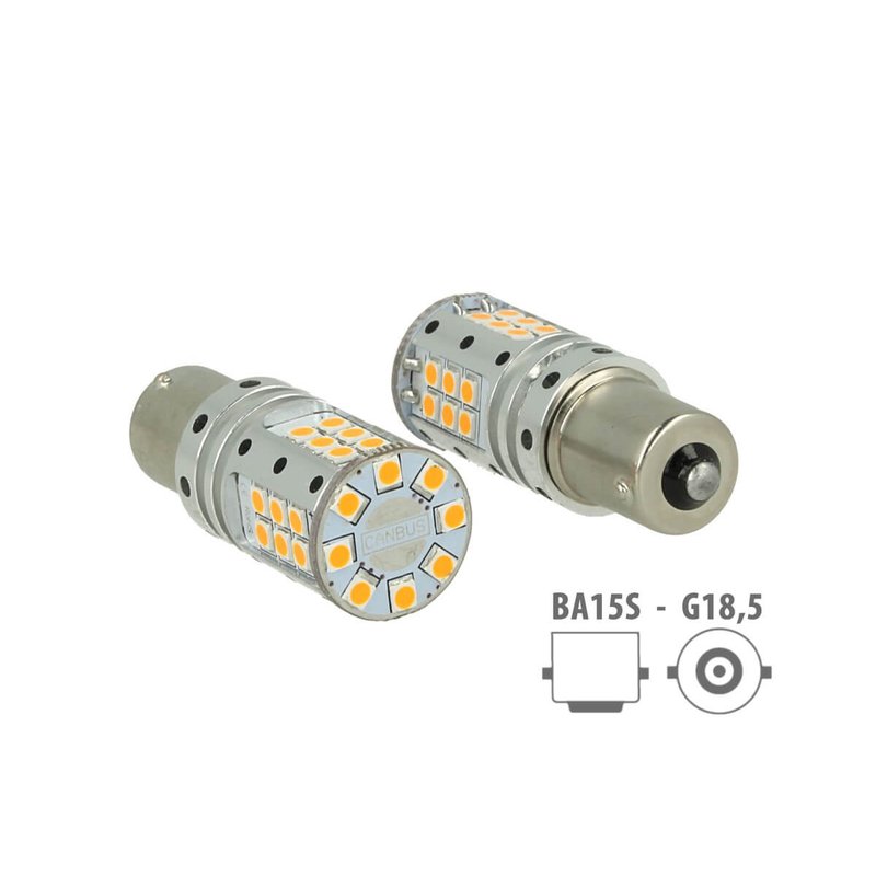 Lampada Led 1156 BA15S P21W Canbus 12V 25W Reale Arancione Per Frecce No Errore 32 Smd 3030
