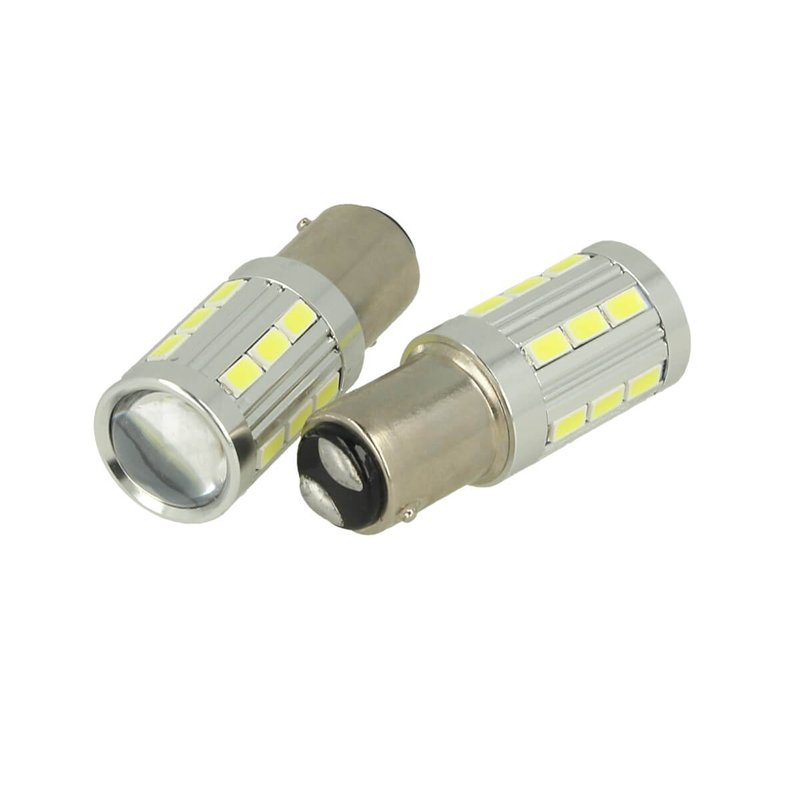Lampada Led BAZ15D 1157 P21/4W 12V 24V 21 Smd 5730 Super Bianco Luminoso Piedi Storti Asimmetrica