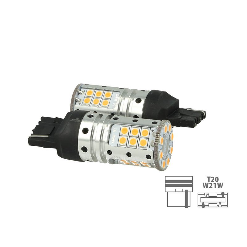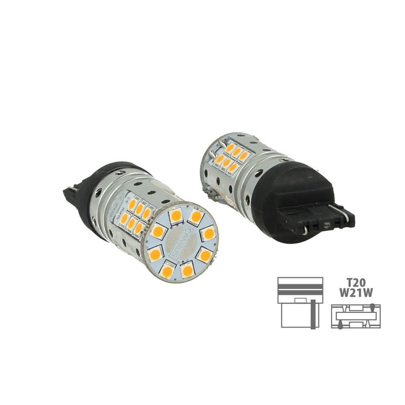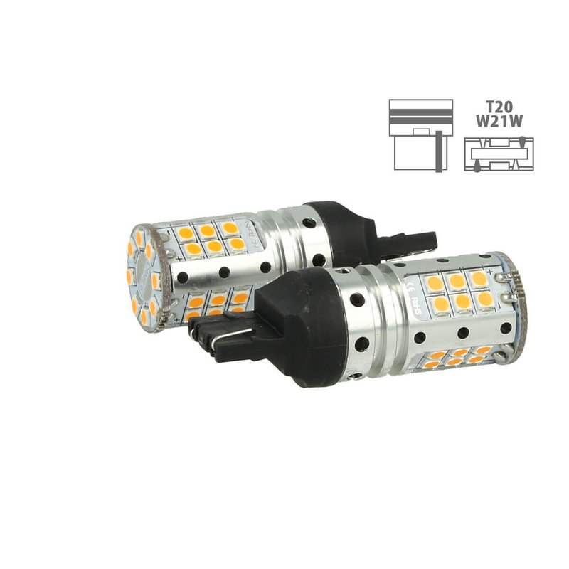 Lampada Led T20 W21W WY21W 7440 Canbus 12V 25W Reale Arancione Per Frecce No Errore 32 Smd 3030