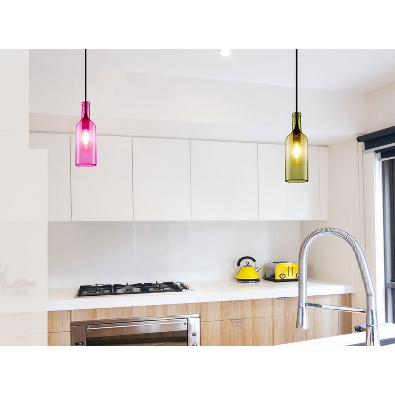 Lampadario a Sospensione Forma Bottiglia In Vetro Colore Rosso Attacco E14 Per Ristorante Sushi Bar SKU-3769