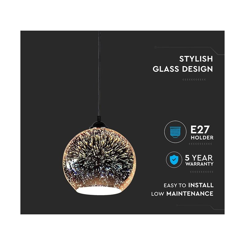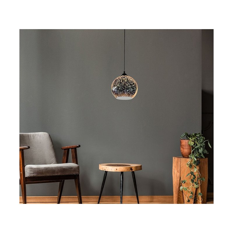 Lampadario Led a Sospensione Campana in Vetro Colore Cromo Specchio con Effetto 3D Diametro 20cm Attacco E27 SKU-40121