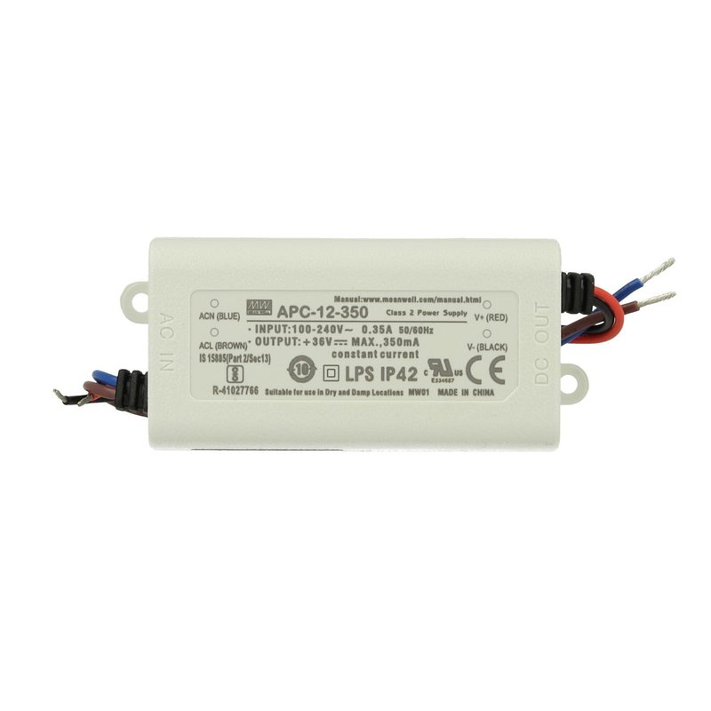 Led Driver CC MW MEAN WELL APC-12-350 Trasformatore 350mA 9V-36V DC 12W Corrente Costante IP42