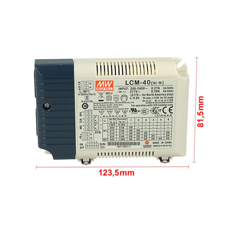 Led Driver CC MW MEAN WELL LCM-40 Dimmerabile 0-10V 10V PWM Corrente Costante Selezionabile 350/500/600/700/900/1050mA
