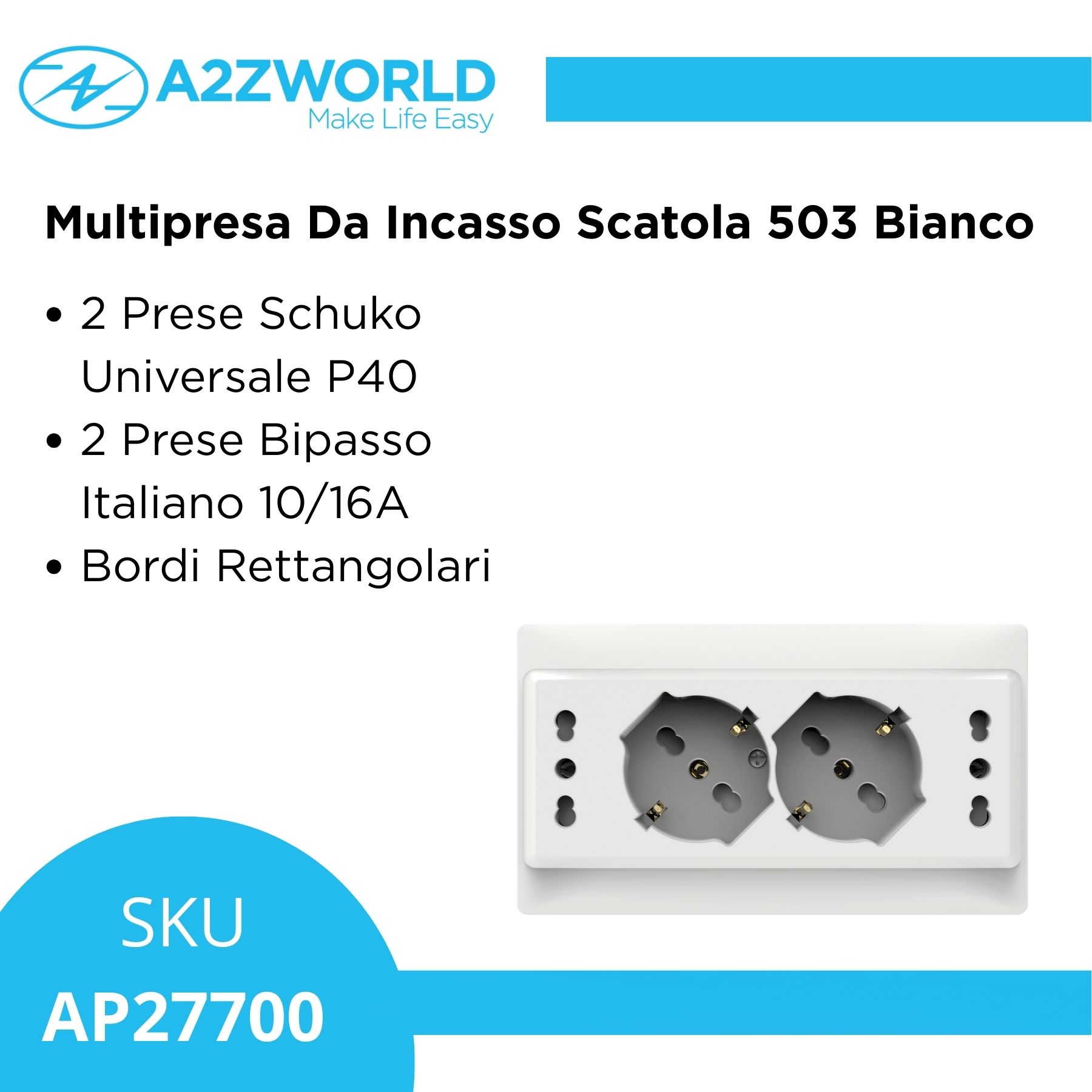 - ✔ Soluzione per Scatola 503 (3 Moduli) – Progettata per sfruttare al massimo lo spazio della scatola da incasso 503, risolve il limite delle prese tradizionali nei frutti modulari.