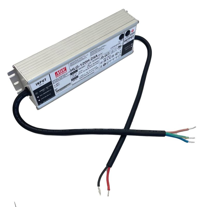 - Il MW MEAN WELL HLG-120H-24A è un alimentatore LED con uscita unica. Ha una potenza di 120W, una tensione di uscita di 24V e una corrente di uscita di 5A.