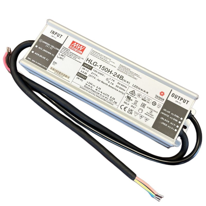 MW MEAN WELL HLG-150H-24B Alimentatore IP67 150W 24V 6,3A Dimmerabile 1-10V PWM Input 220V e 110V