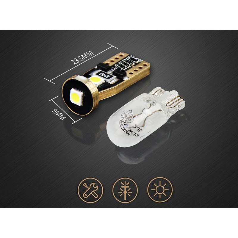 10x Lampade LED T10 W5W Canbus 12V Bianco 6000K con Leva Smontaggio Antigraffio