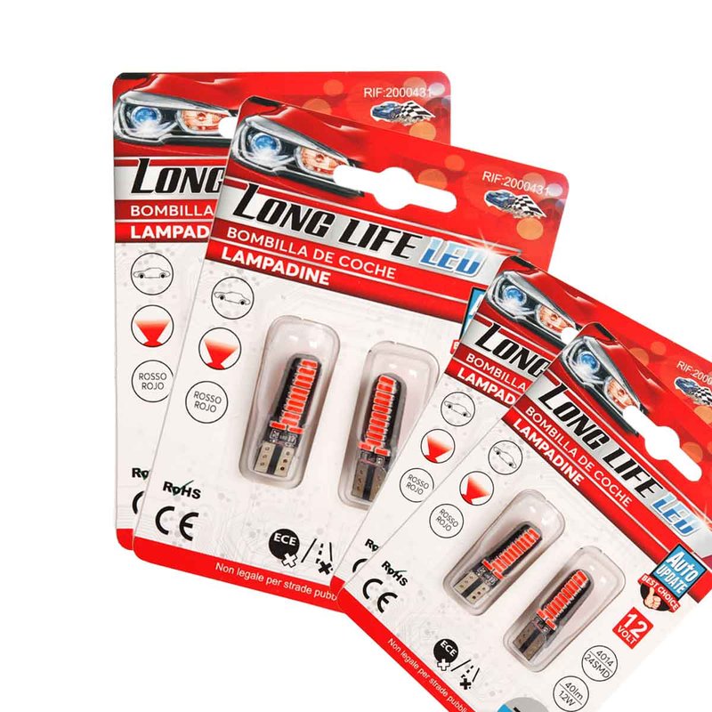 8 Pezzi Lampada Led T10 W5W 24 SMD 4014 12V 1.2W 40lm Luce Colore Rosso 34mm