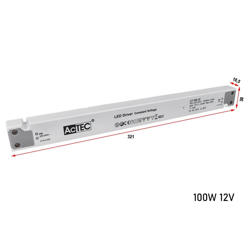 Alimentatore Ultra Slim Sottile 100W 12V Trasformatore CV Per Striscia Led Profili Alluminio