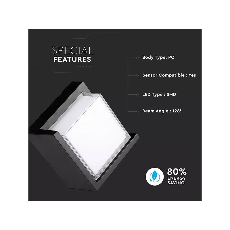 Applique Lampada Led Da Muro Parete Quadrato Neutro 4000K 12W Con Diffusore Semicoperto Colore Nero SKU-218540