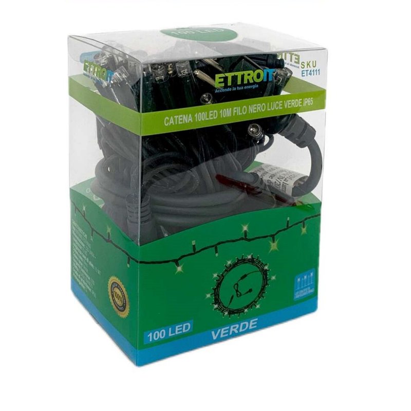 Catena Luminosa di Luci Led IP65 10 Metri Con 100 Led Filo Nero Luce Verde Con Connettore Allungabile