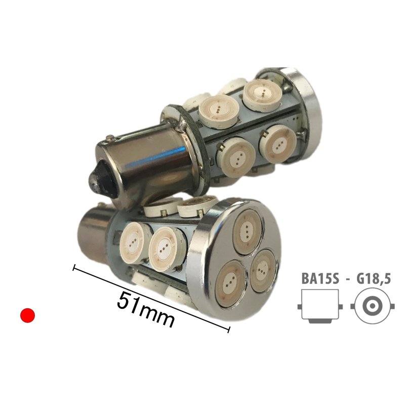 Coppia 2 Lampade Led BA15S 1156 P21W Con 13 Smd 9080 Colore Rosso 12V 6W