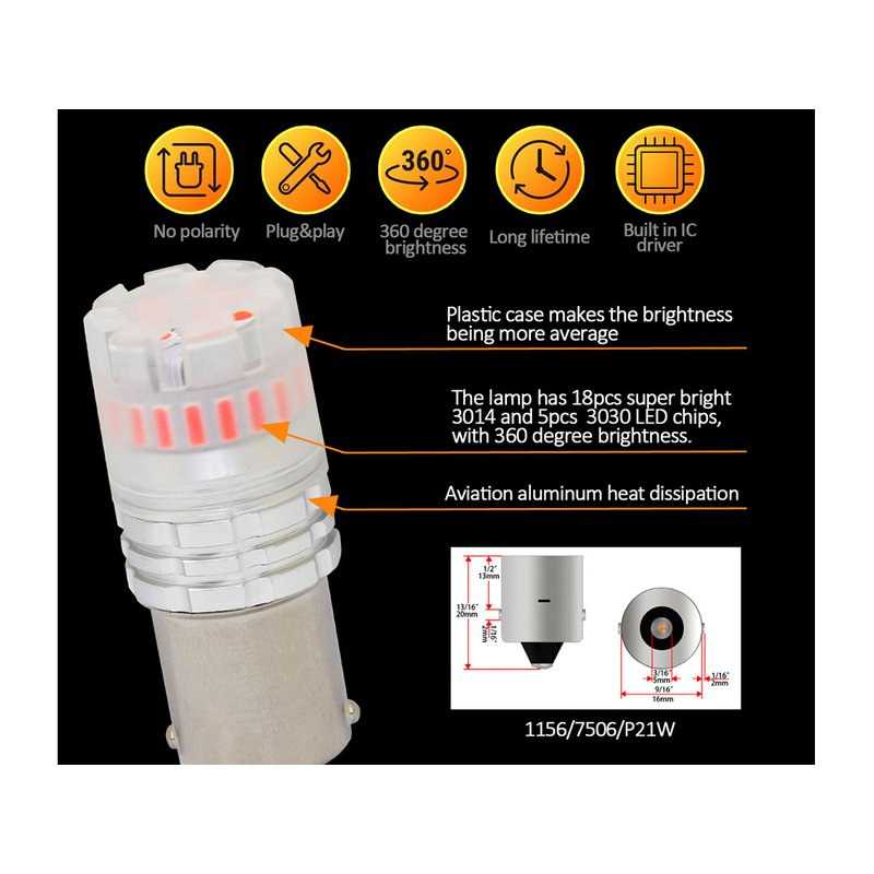 Lampada Led 1156 BA15S P21W Canbus Rosso 12V No Polarita IP67 Illuminazione 360 Gradi