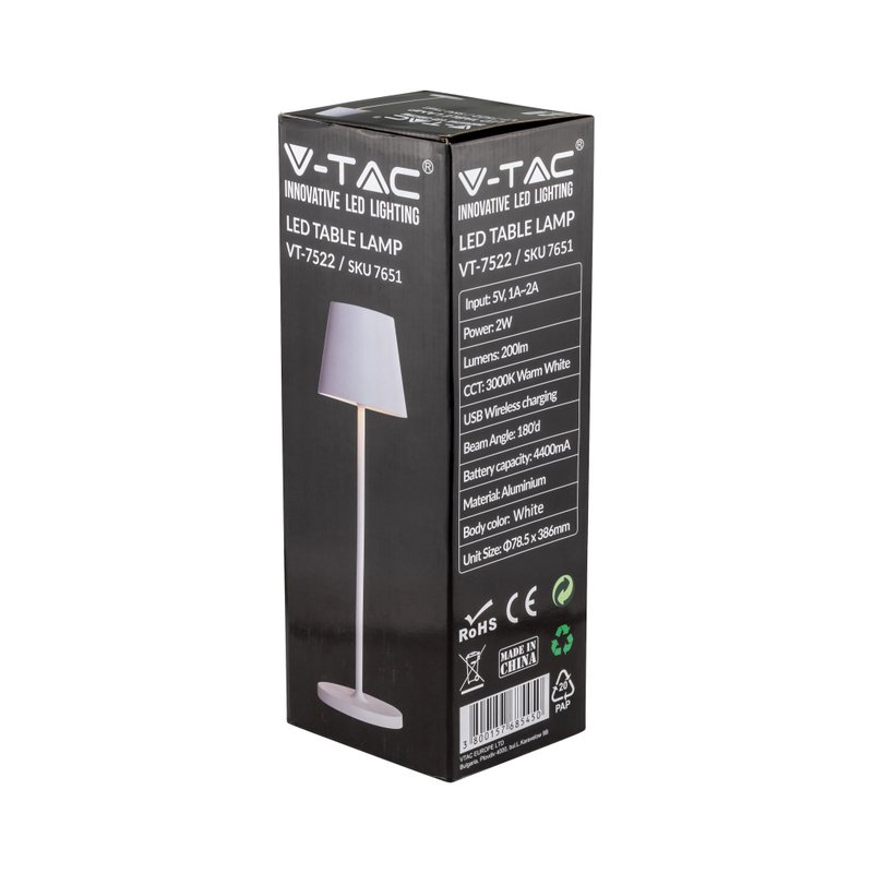 - Presentiamo la nostra lampada LED da tavolo 2W, con ricarica wireless, che offre una soluzione di illuminazione unica ed innovativa. Con un design sofisticato e un corpo in alluminio, offre una luce diffusa e piacevole grazie alla sua copertura opaca e al doppio fascio luminoso fornito dai LED posizionati sia nella parte superiore sia in quella inferiore.