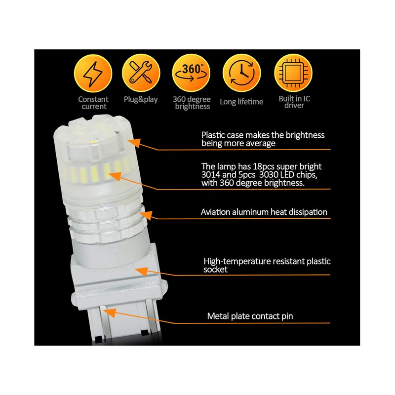 Lampada Led T25 3157 3156 Canbus Bianco 12V No Polarita IP67 Illuminazione 360 Gradi