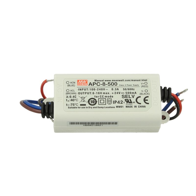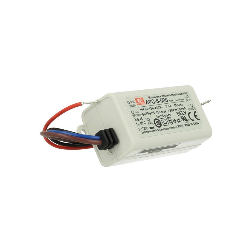 Led Driver CC MW MEAN WELL APC-8-500 Trasformatore 500mA 8V-16V DC 8W Corrente Costante IP42