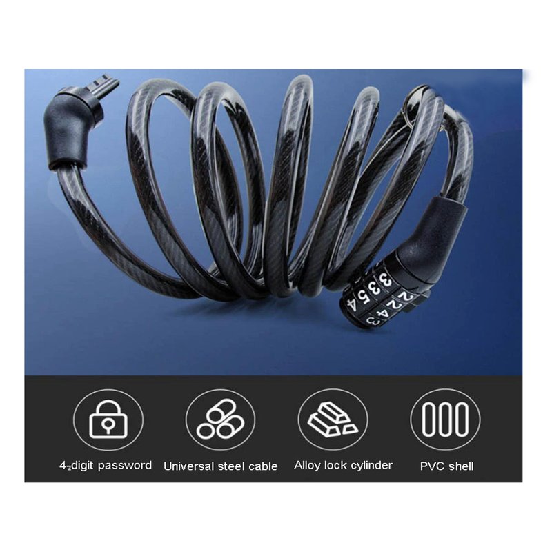 Lucchetto Bici Combinazione 4 Cifre 11X1200mm Per Bicicletta Monopattino Colore Assortito