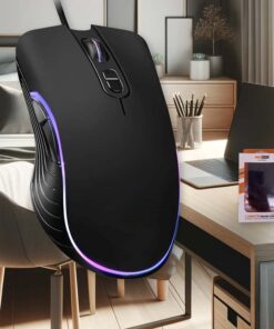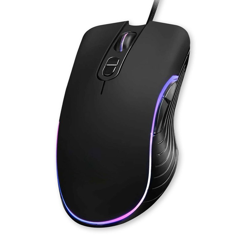 Mouse da Gioco con 2 Tasti Laterali e Tasto Regola DPI RetroIlluminato con RGB Casuale Filo Antipiega 1,25 metri Modello Finitura Nero Opaco