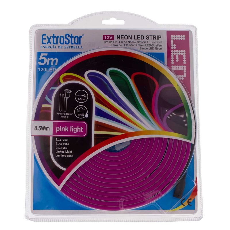 Striscia LED Neon 5M 8.5W/M 12V 120LED Modellabile e Tagliabile IP65 Impermeabile Pink Angolazione Luce 120