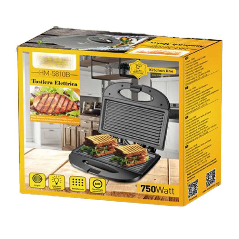 Piastra Tostapane 750W Tostiera Elettrica con Rivestamento Antiaderente Piastra Tosta e Griglia Misura 21x12cm Nero