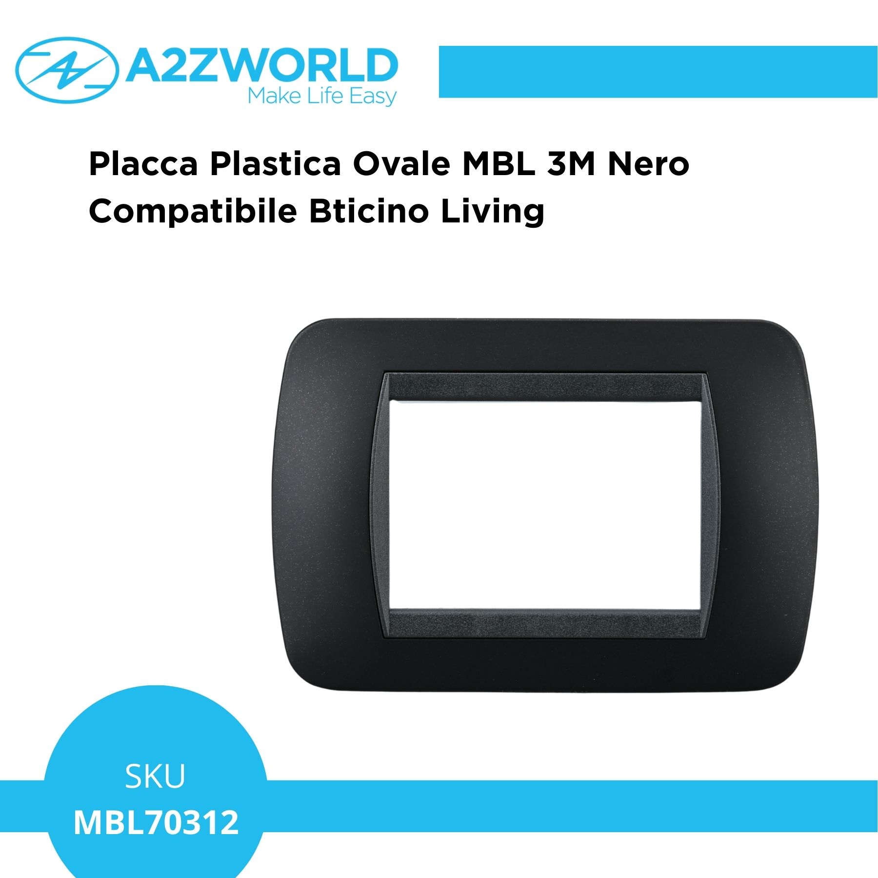 Placca Plastica Ovale MBL 3M Nero Compatibile Bticino Living BLN88302
