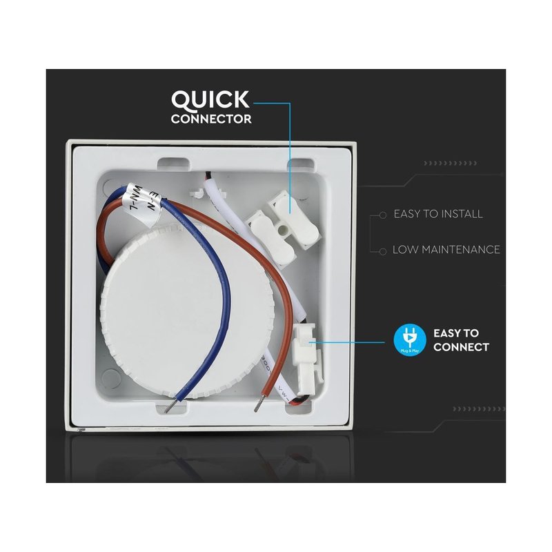 Garanzia 24 Mesi ISTRUZIONI DI INSTALLAZIONE: Passo 1: Fissare la staffa di sospensione con le viti (Incluse). Passo 2: Collegare il cavo di alimentazione AC tramite il QUICK CONNECTOR (Incluso) al driver e collegare il cavo DC del pannello al driver. Passo 3. Fissare il pannello alla staffa di sospensione. Passo 4: Accendere l’interruttore e testare il pannello. Importante: questa modalità d’installazione rende possibile il fissaggio senza far vedere viti e collegamenti all’esterno della carcassa, assicurando un risultato pulito ed equilibrato |