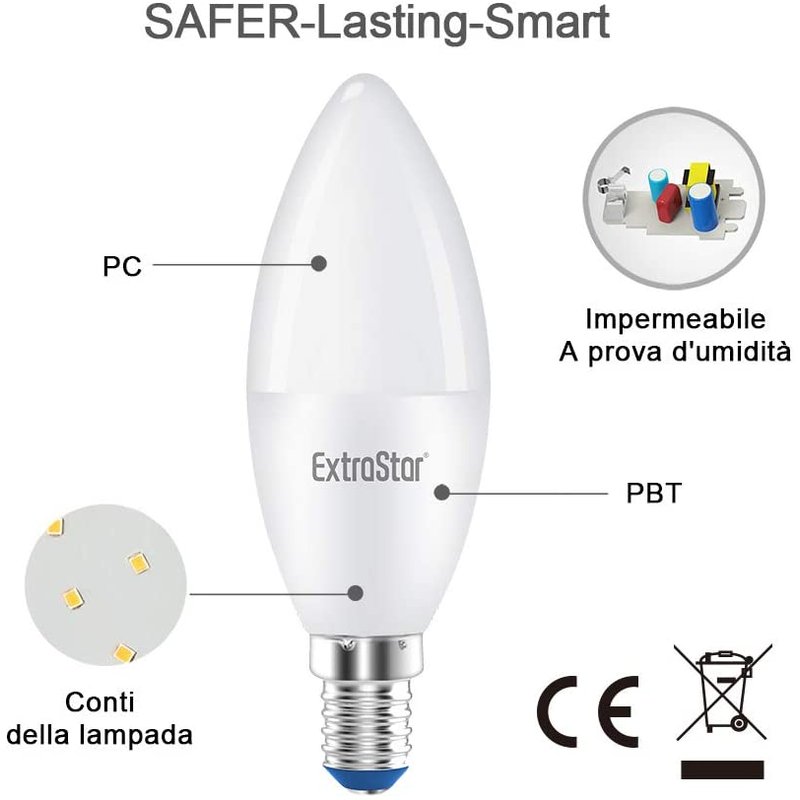 2 PZ Lampada A Led, Lampadina E14 C37 8W Bianco Caldo 3000K 720 Lumen