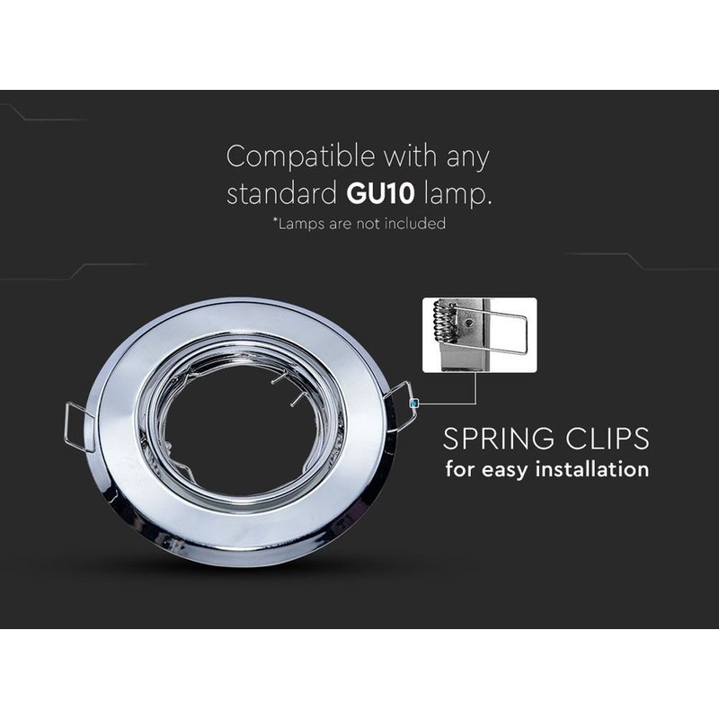 2 PZ Porta Faretti LED GU10 MR16 Rotondi Orientabili con Molla Cromati SKU 8940