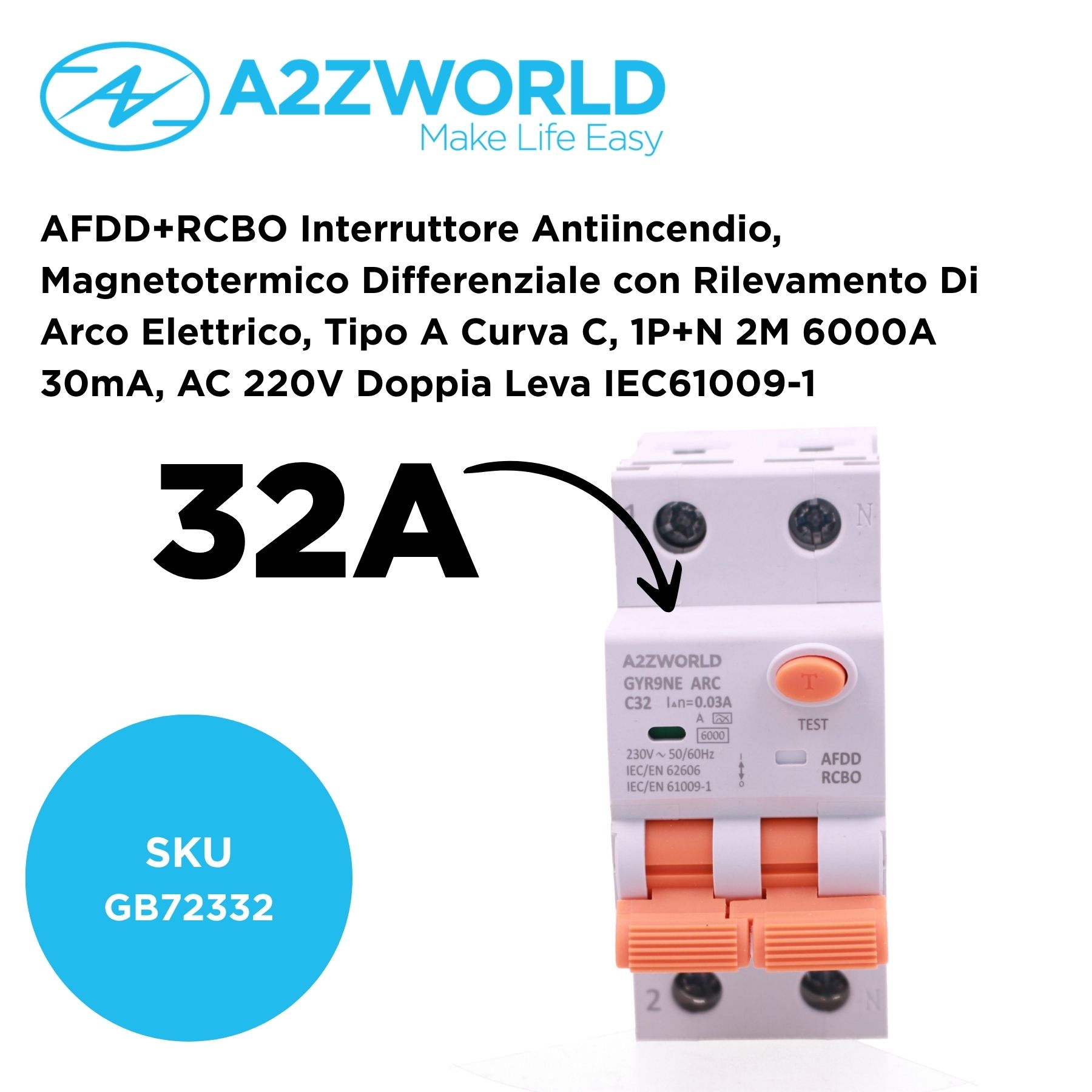 - ️ Dispositivo combinato AFDD + RCBO per rilevamento archi elettrici, sovraccarichi e dispersioni