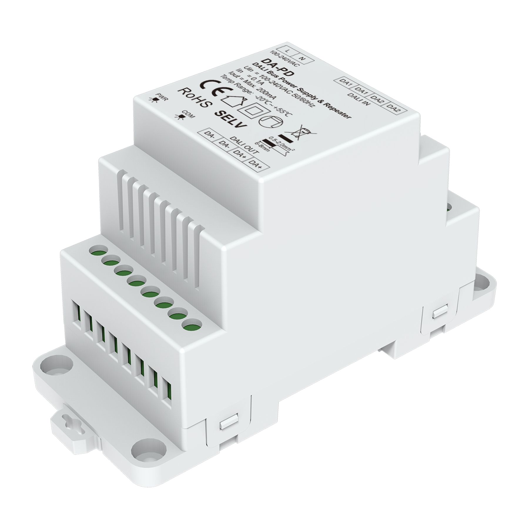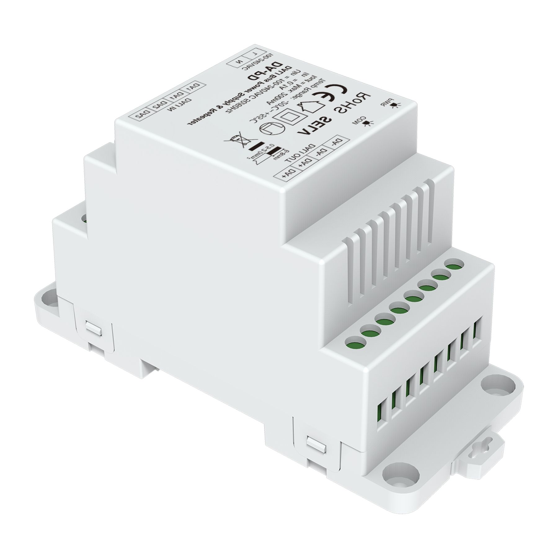 - Installazione su guida DIN con ingresso 100-240VAC