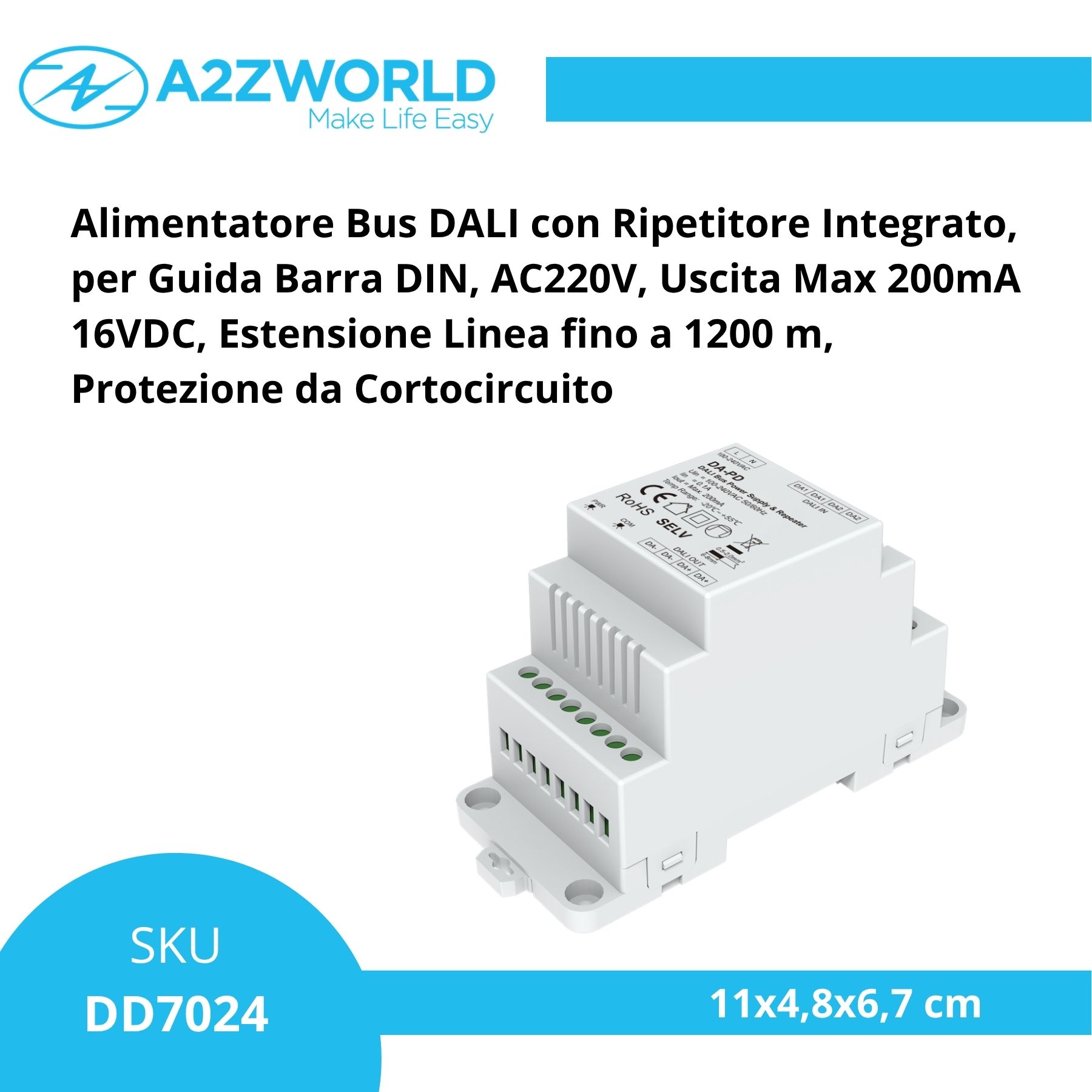 - Estensione linea DALI fino a 1200 metri con rigenerazione segnale
