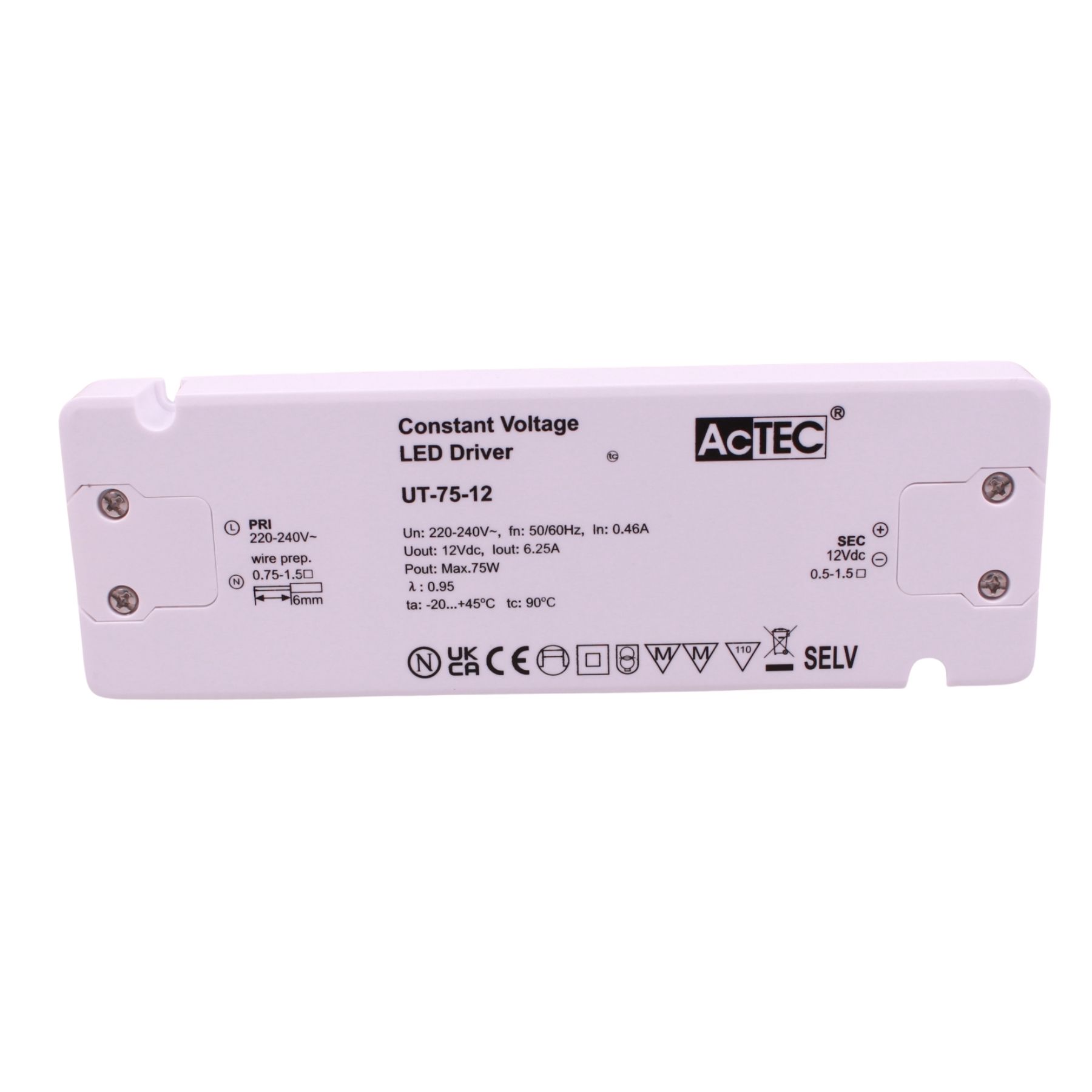 Alimentatore Trasformatore Ultra Slim 12V Tensione Costante CV (75W)