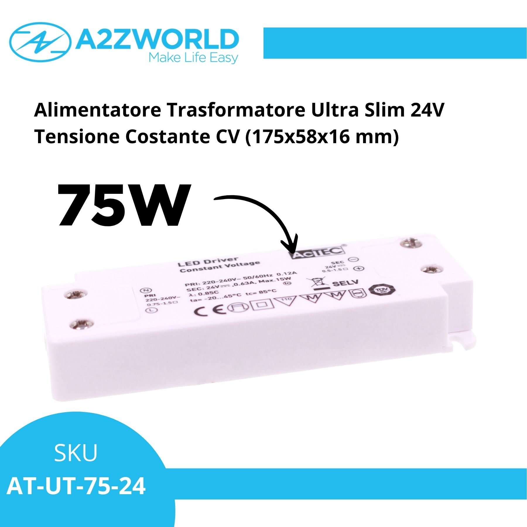 Alimentatore Trasformatore Ultra Slim 24V Tensione Costante CV (75W)