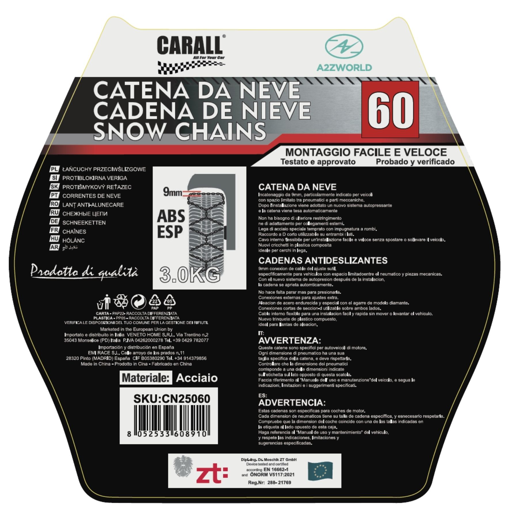 Catena Da Neve 9mm KNS60 Gruppo 60 Omologato ONORM V5117