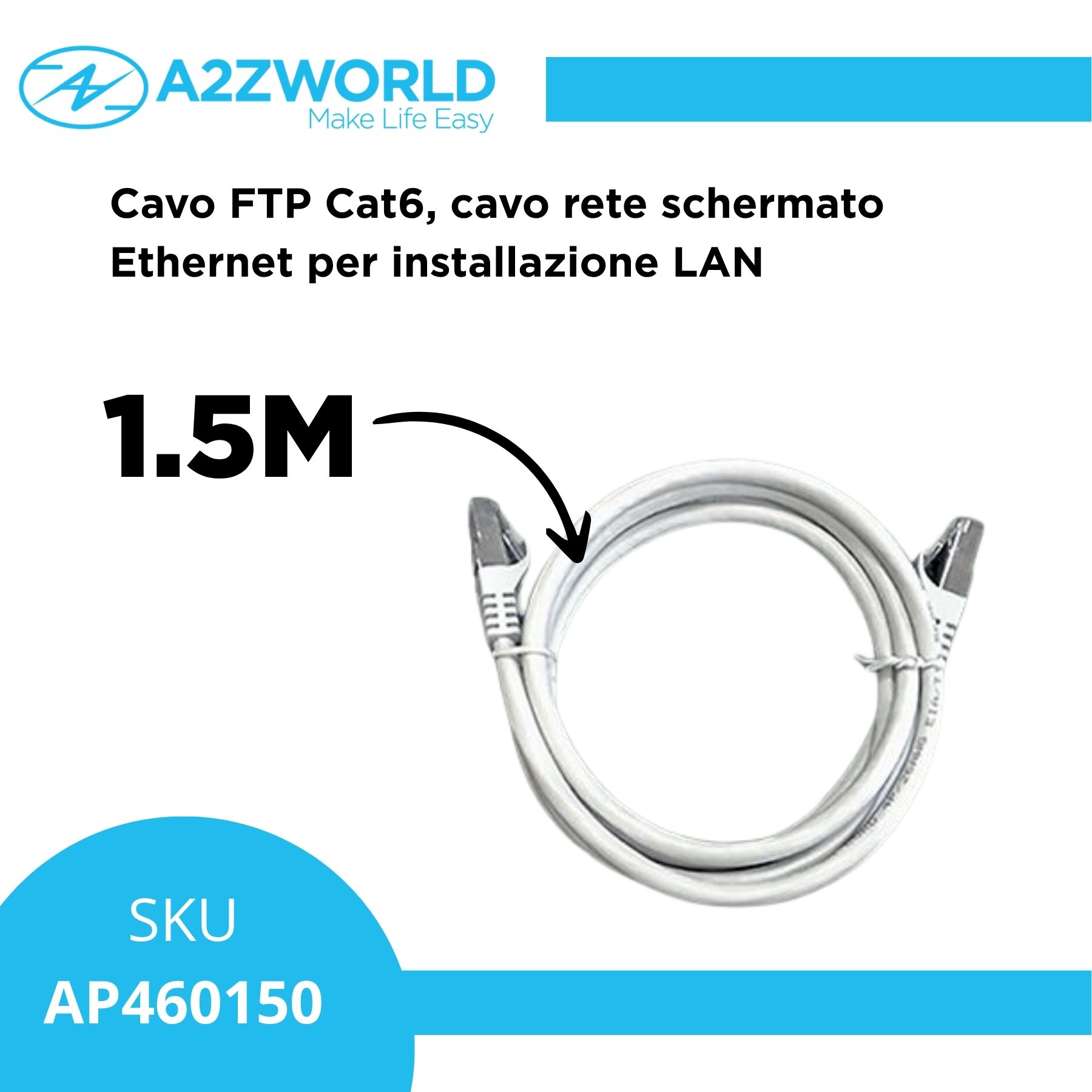 Cavo Ethernet Cat6 FTP RJ45, Patch Cord Schermato LAN, Varie Lunghezze (1.5M)