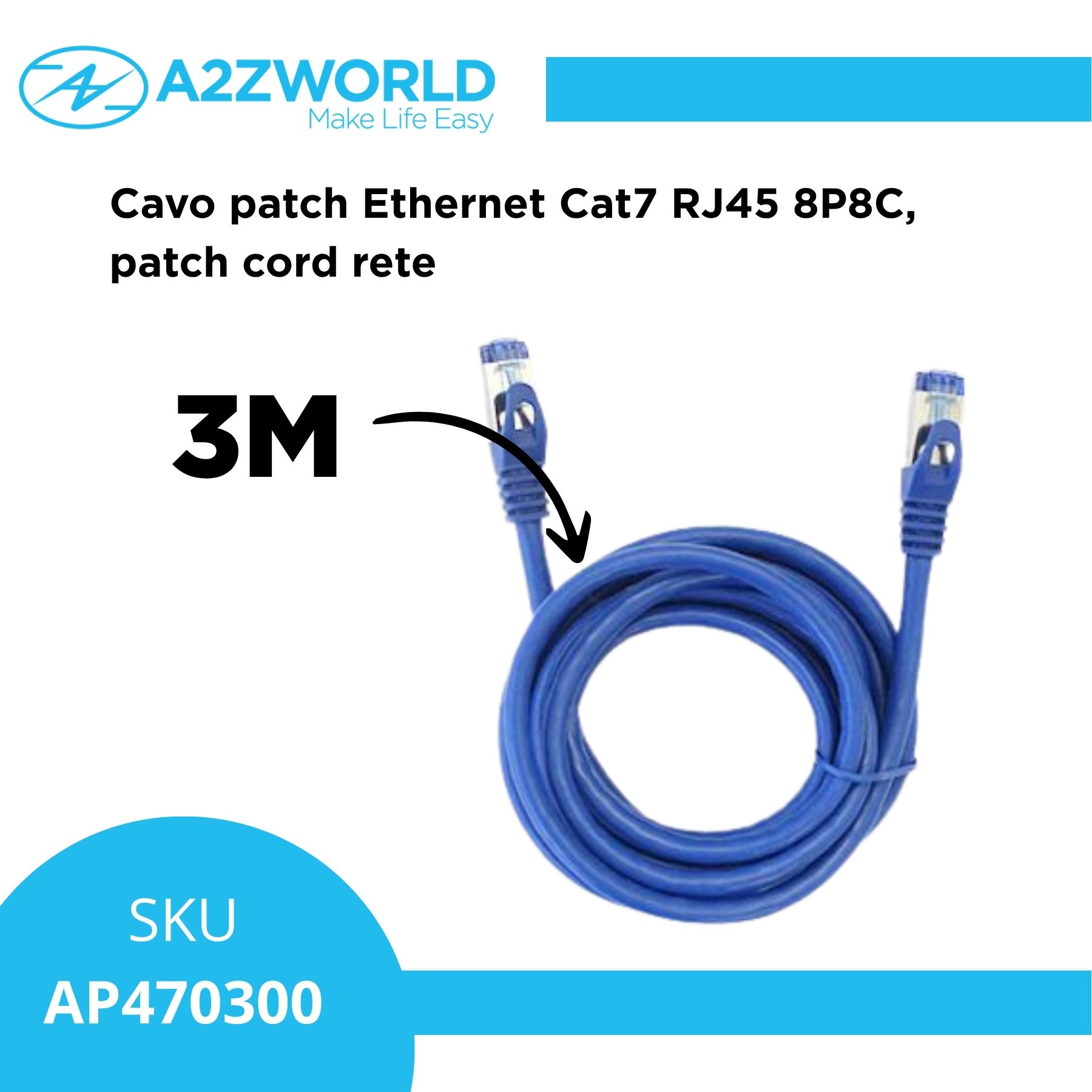 Cavo Ethernet Cat7 RJ45 8P8C, Patch Cord Rete LAN, Disponibile in Lunghezza 5M,10M,20M (3M)