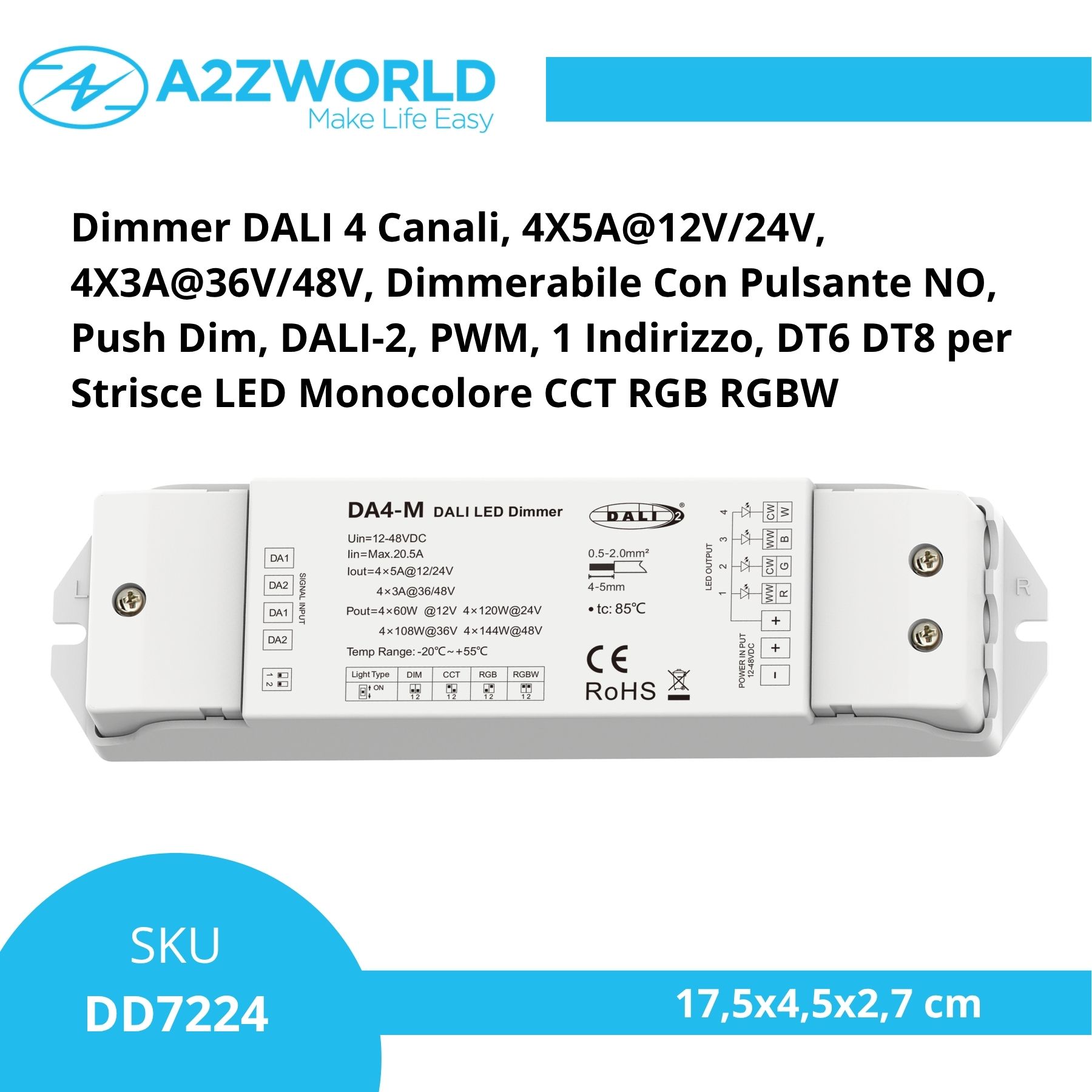 - ️ Dimmer DALI-2 a 4 canali con uscita PWM per strisce LED a tensione costante
