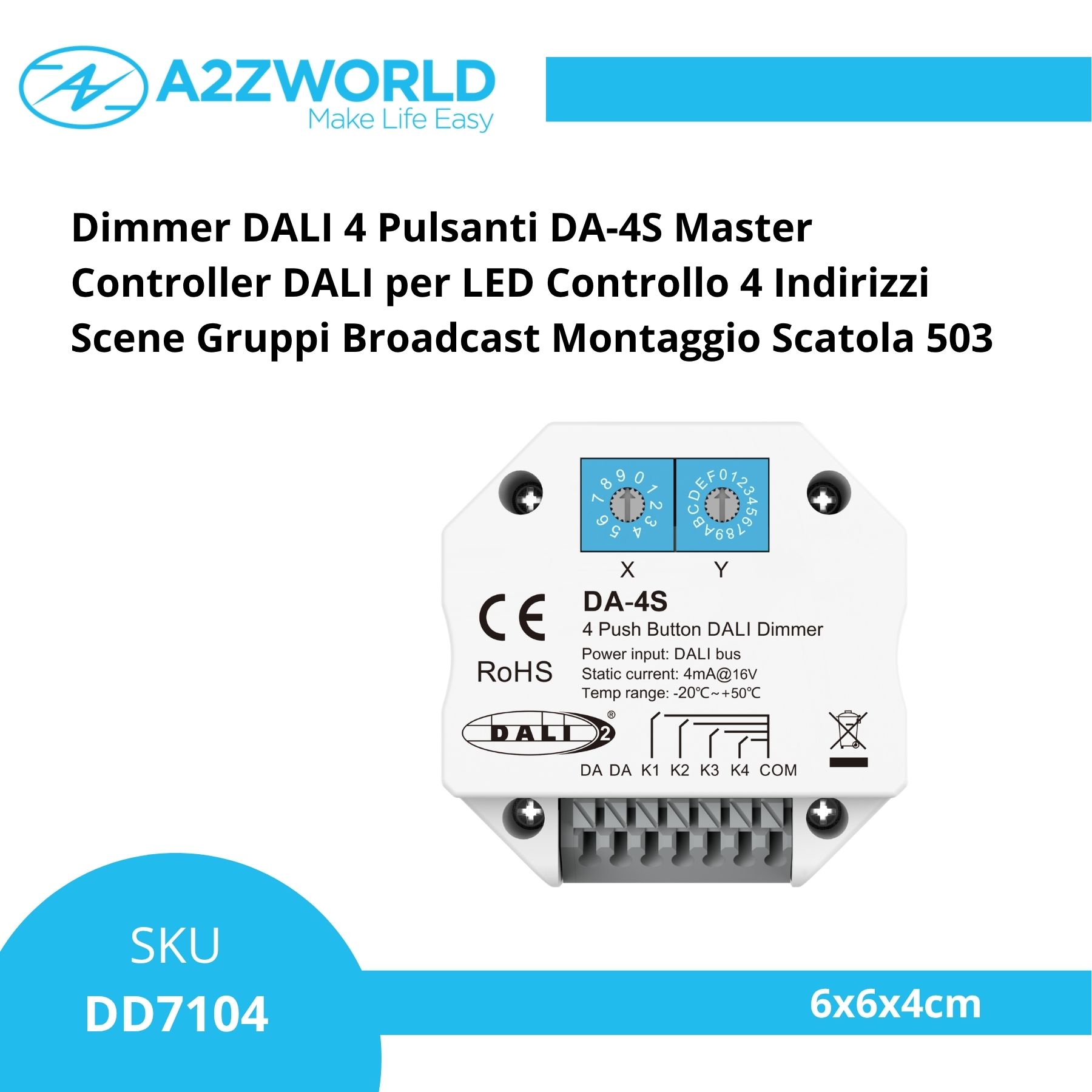 Dimmer DALI 4 Pulsanti DA-4S Master Controller DALI per LED Controllo 4 Indirizzi Scene Gruppi Broadcast Montaggio Scatola 503