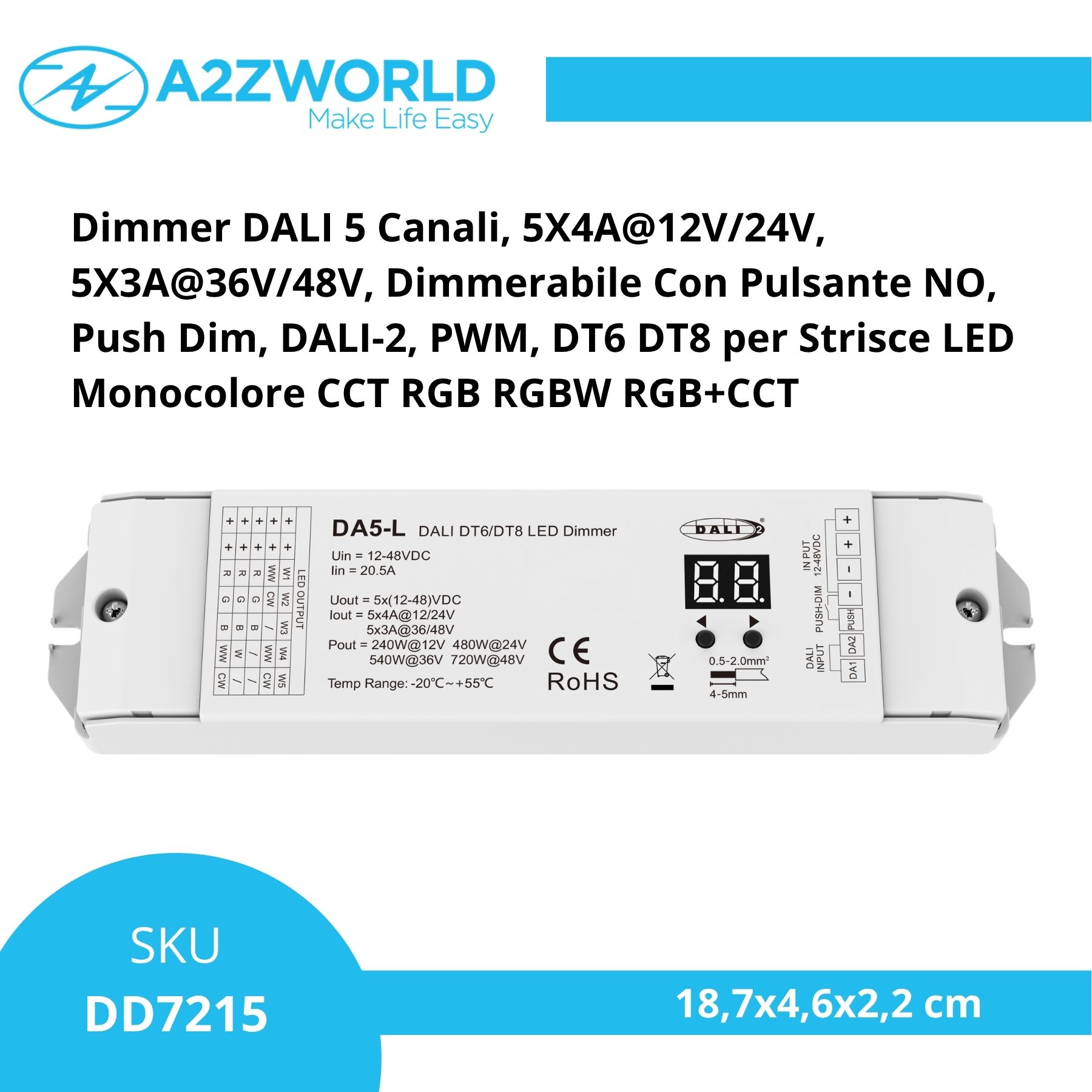 - ⚙️ Corrente 5x4A @12/24V e 5x3A @36/48V per strisce LED a tensione costante