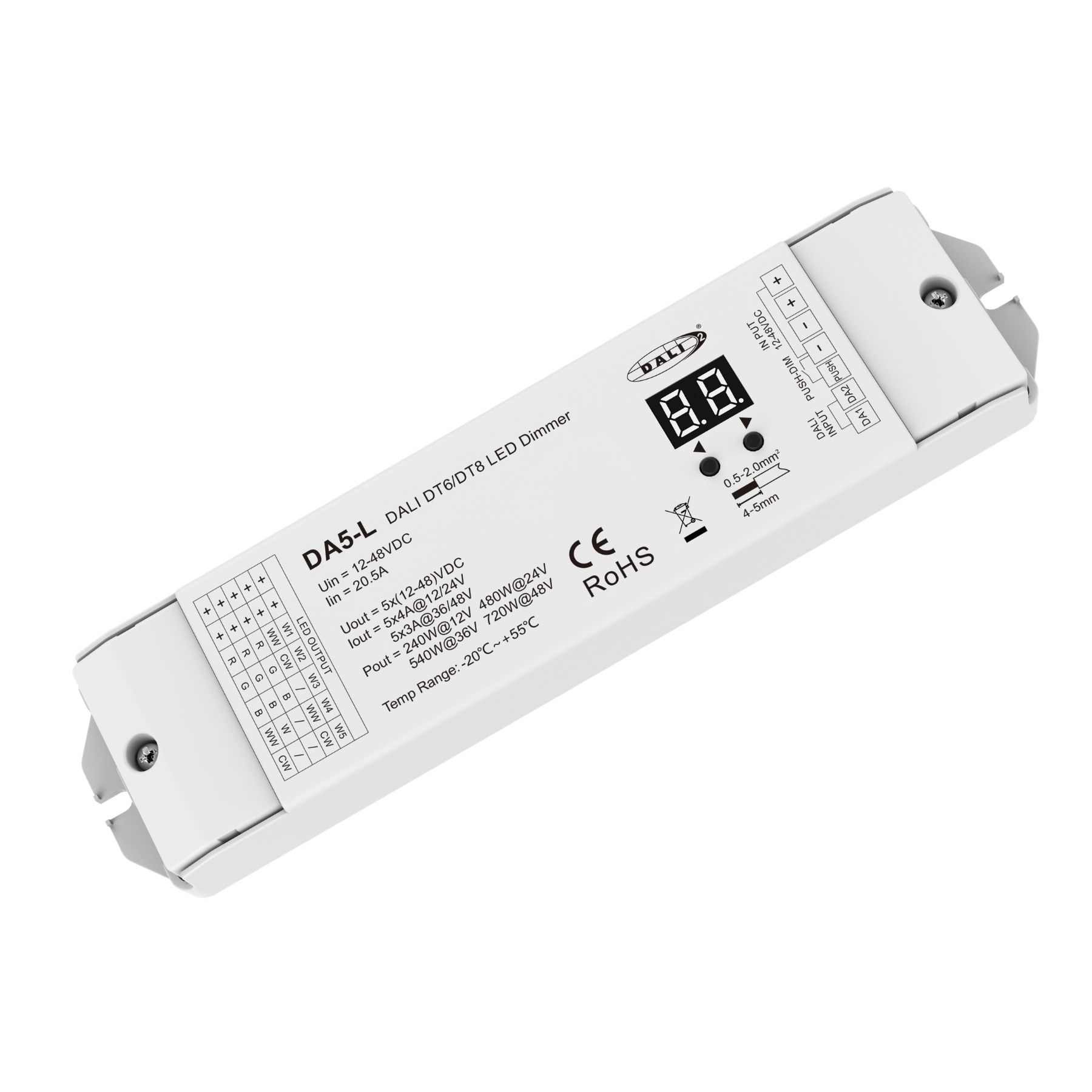 - ️ Dimmer DALI-2 a 5 canali con uscita PWM per controllo LED multicolore