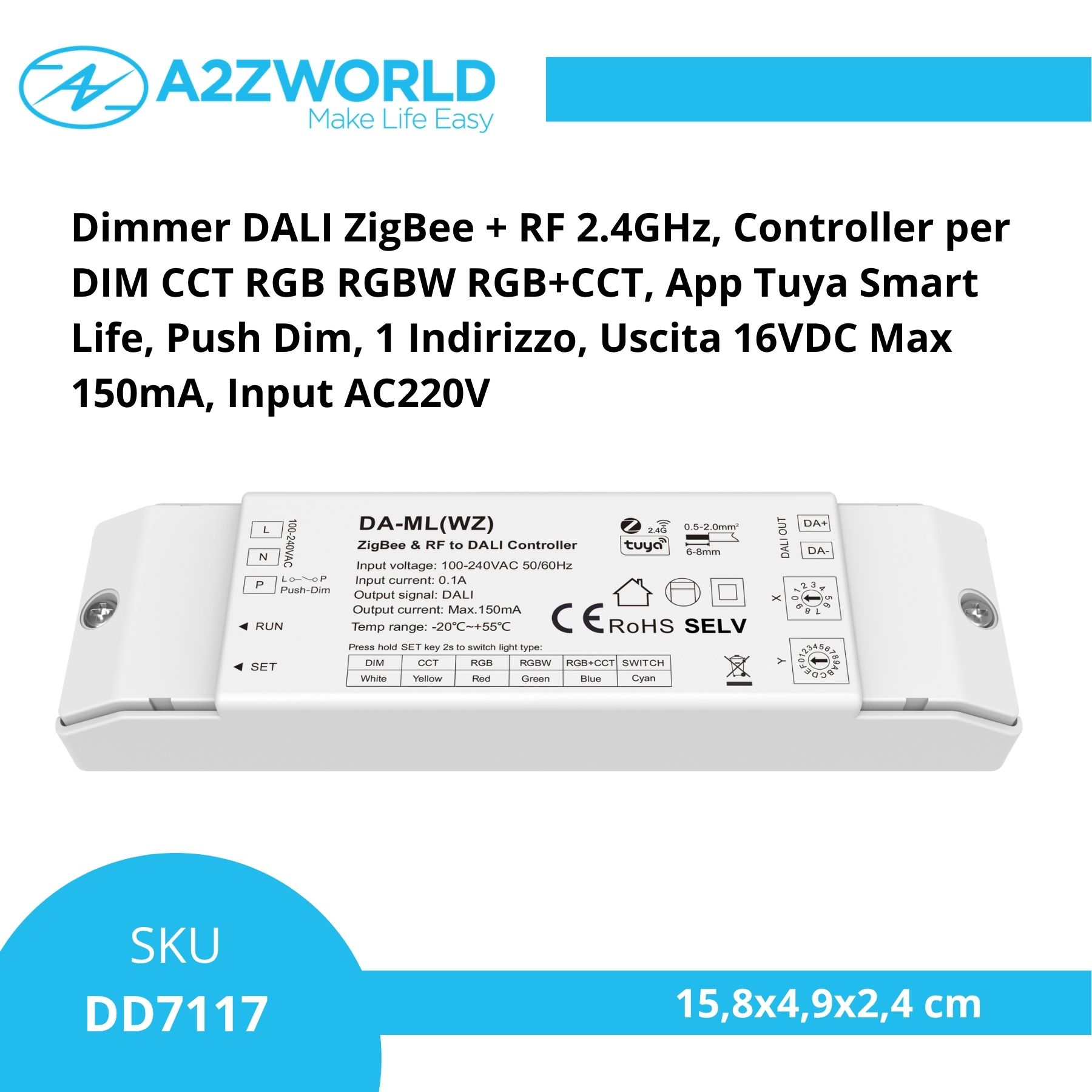- Gateway/controller DALI con controllo ZigBee e RF 2.4GHz integrato
