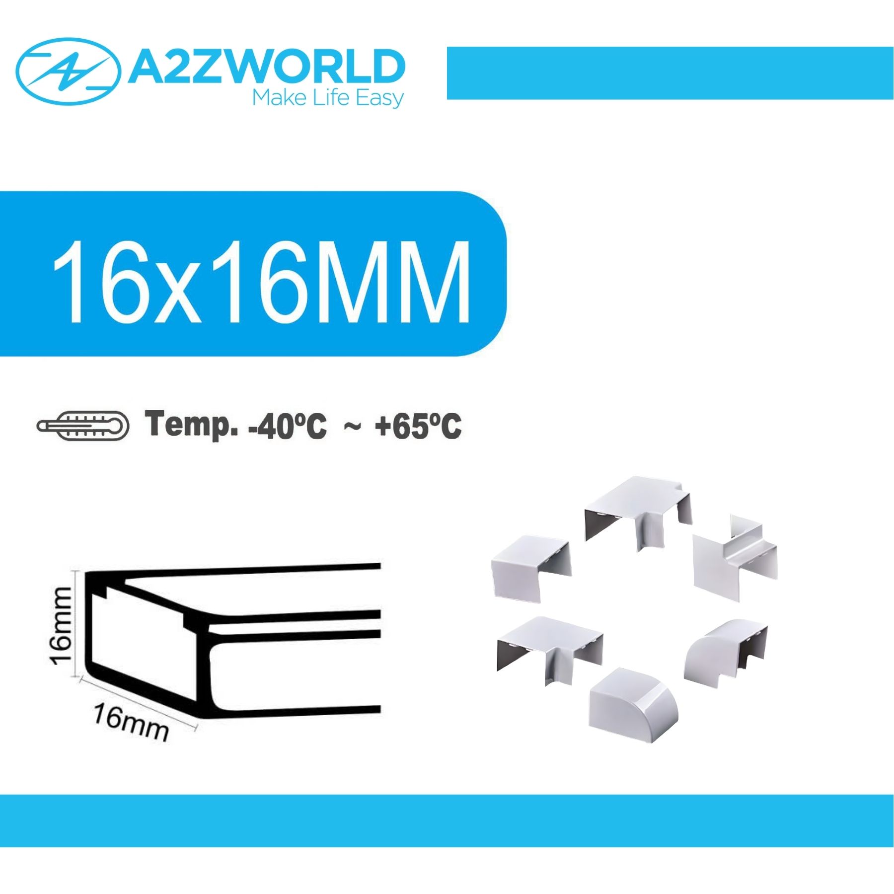 - Include connettore lineare, forma a L, forma a T e angolari piatti interni ed esterni