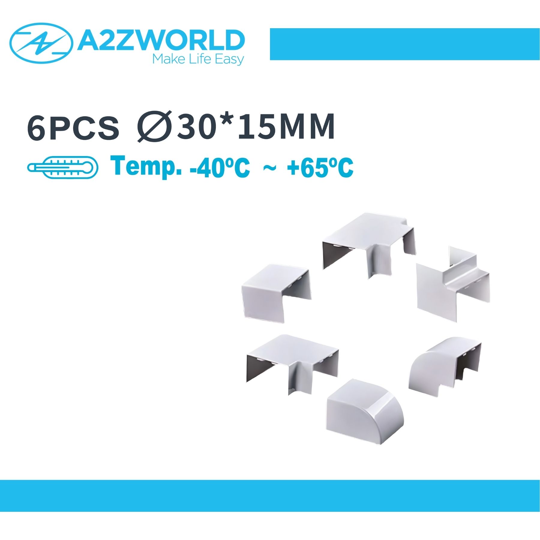 Kit 6 Accessori Per Canaline Passacavi 30X15mm, Connettore Lineare, Forma L, Forma T, Angolare Piatto Interno Esterno, Colore Bianco