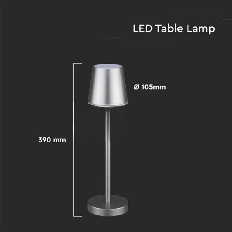 Lampada Led da Tavolo Grigio Ricaricabile 3W Dimmerabile con Comandi Touch Uso Interno ed Esterno IP20 Bianco Naturale 4000K SKU-10188