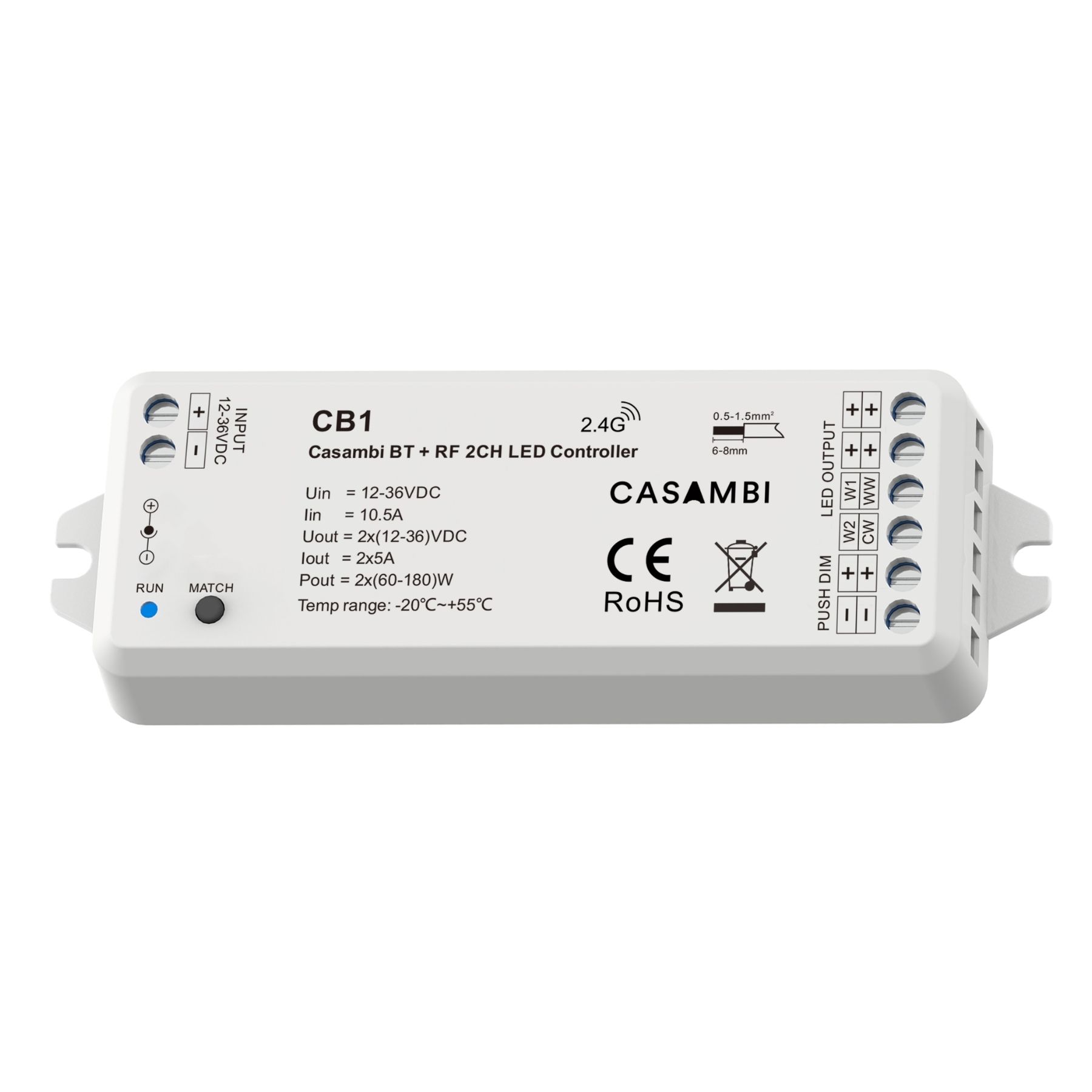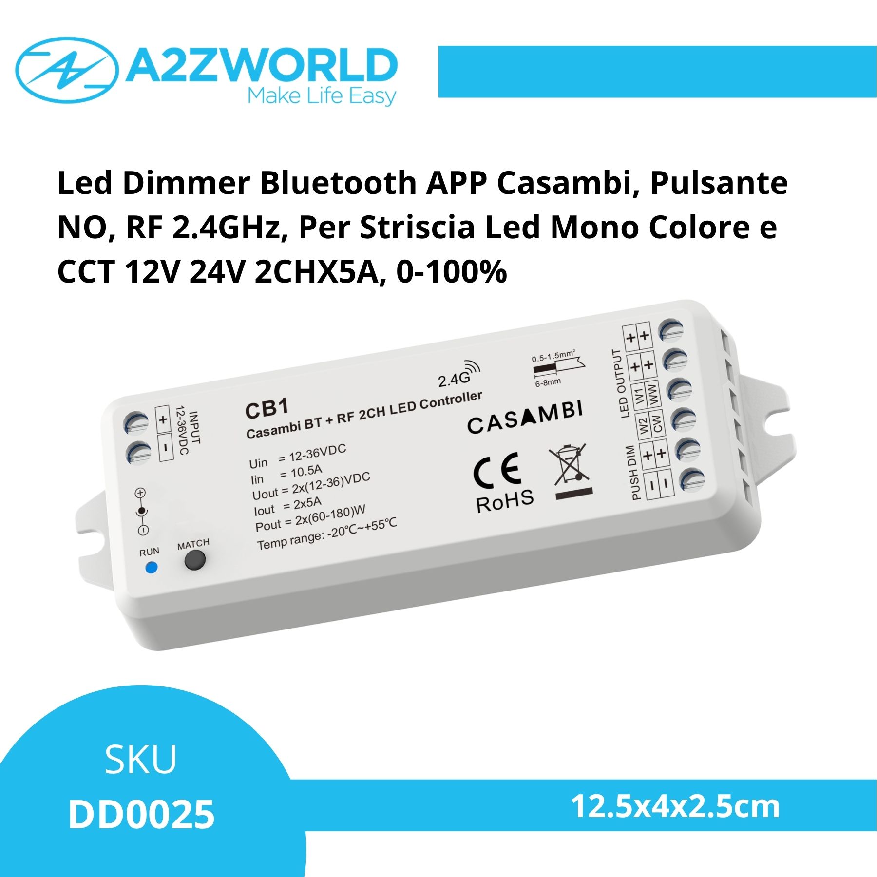 Led Dimmer Bluetooth APP Casambi, Pulsante NO, RF 2.4GHz, Per Striscia Led Mono Colore e CCT 12V 24V 2CHX5A, 0-100%