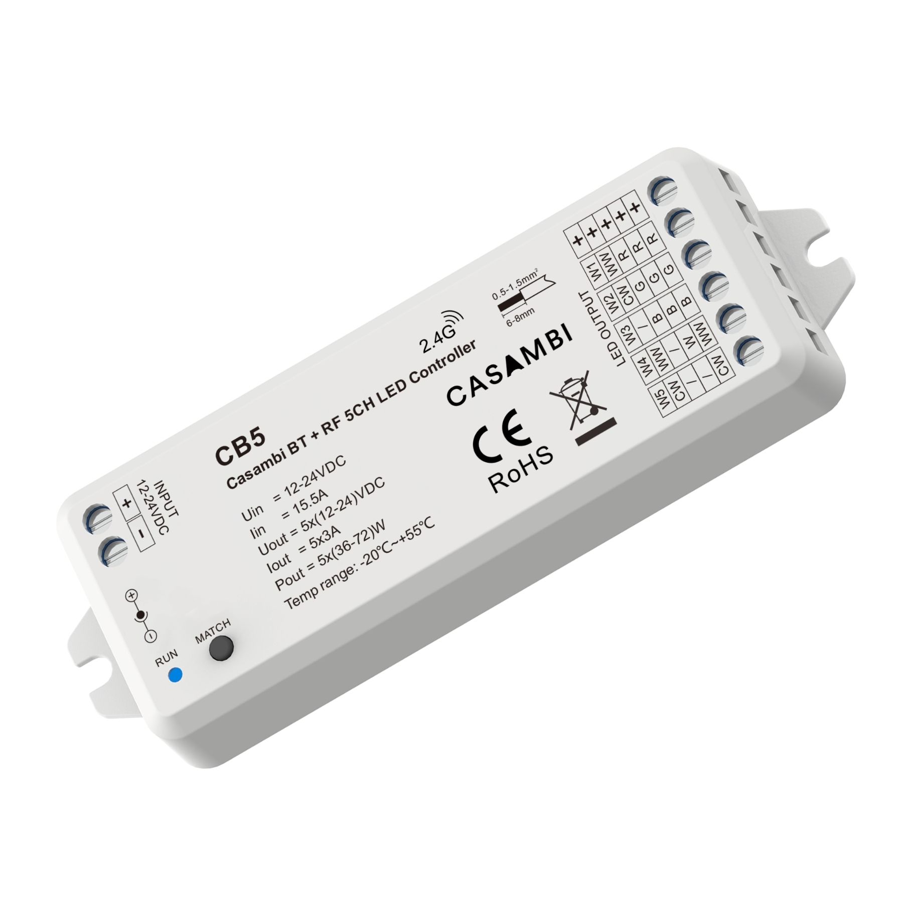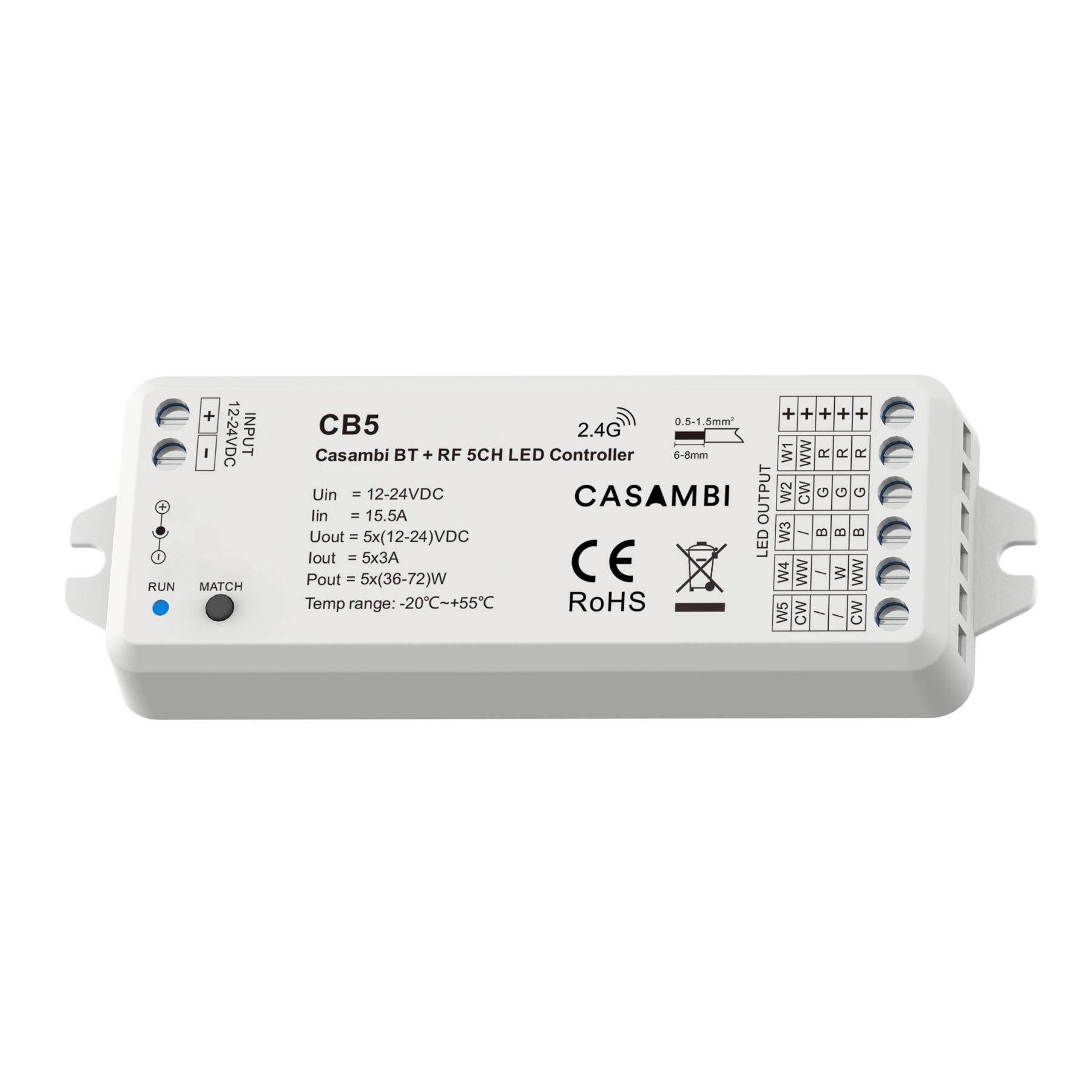 Led Dimmer Bluetooth APP Casambi, RF 2.4GHz, 5 in 1 Per Striscia Led Mono Colore CCT RGB RGBW RGB+CCT 12V 24V 5CHX3A, 0-100%