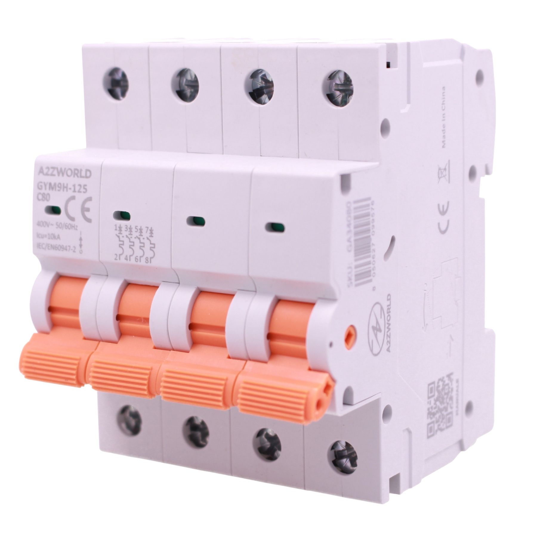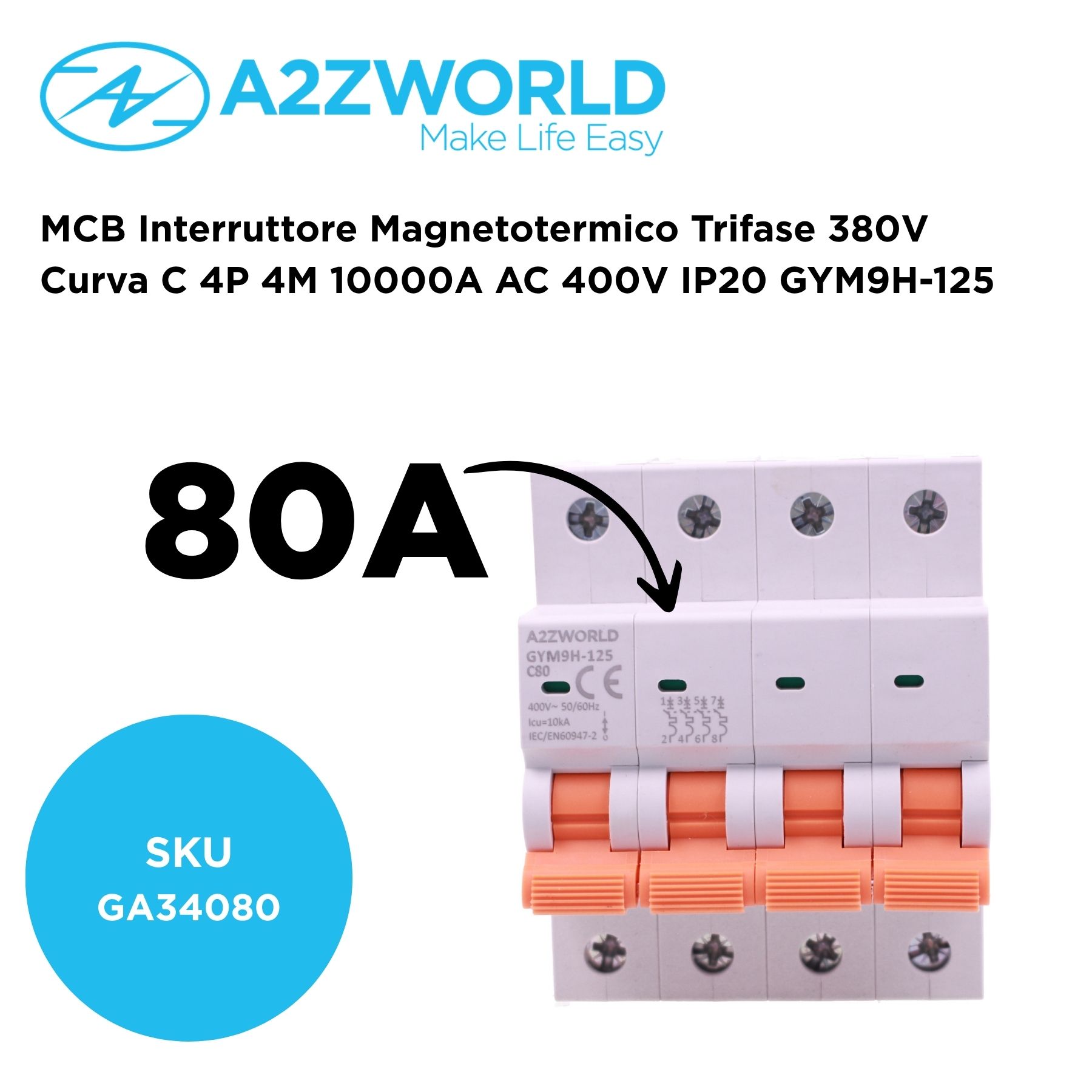 MCB Interruttore Magnetotermico Trifase 380V Curva C 4P 4M 10000A AC 400V IP20 GYM9H-125, Disponibili 80A 100A 125A (C80A)